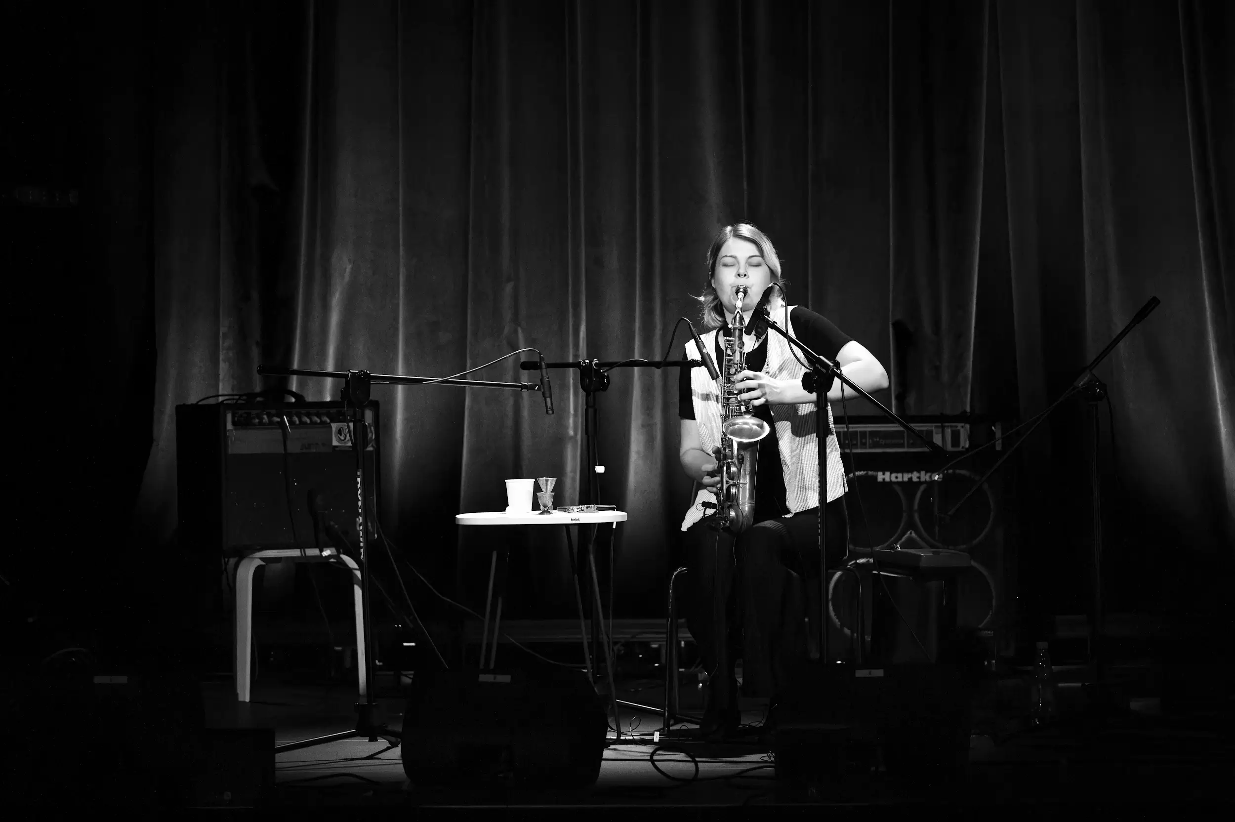 Jej solowy występ rozpoczął koncertową część festiwalu – najpierw grała na sopranie, później sięgnęła po alt. Na obu instrumentach snuła niespieszną, urozmaiconą opowieść, która miała w sobie coś z przyjacielskiego, szczerego wyznania. Takie poczucie mogło wynikać z faktu, iż Anker dawała sobie czas na zamyślenie, by następnie spróbować wejść w jakiś temat, empatycznie zagadnąć słuchaczy albo z ekstrawersją dać upust emocjom. Proponowała zarówno pomruki, zgrzyty czy piski, jak i żarliwe quasi-bluesowe melodie albo melizmatyczne frazy. Niezależnie od tego, jaki kierunek obierała, była w jej grze imponująca precyzja. Łączyła siłę i delikatność, oszczędność i potoczystość. Na bis wróciła do saksofonu sopranowego, improwizując w odniesieniu do motywu „(Njarka) Gambari” Alego Farki Tourégo. Był to kolejny przejaw jej – pełnego głębi i mądrości – podejścia do pięknej w swojej prostocie melodyki.