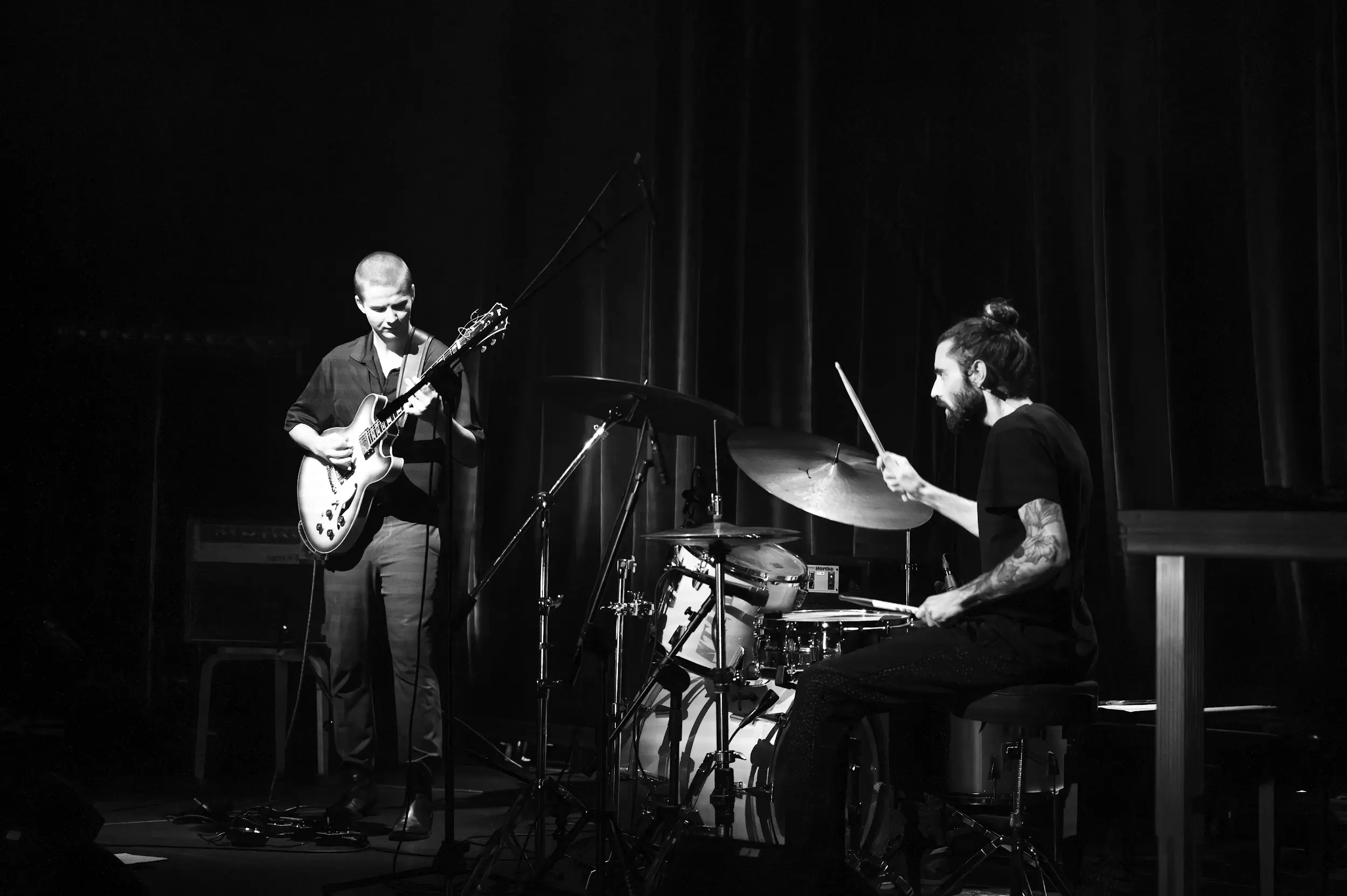Konsekwencji nie brakowało także artystom, którzy zagrali po Turcerovej: mowa o duecie KREM. Tworzą go gitarzysta Krzysztofa Hadrych i perkusista Rémy Gouffault, którzy zadedykowali swój występ ofiarom ludobójstwa w Gazie i wojny w Ukrainie. Pomysł na ich muzykę jest następujący: proponują mathrockowy albo metalowy motyw, który staje się loopem odgrywanym przez nich przez kilka minut. Potem niespodziewanie jego miejsce zajmuje nowy wątek i on także ulega zwielokrotnieniu. Niemal rezygnują więc z jakkolwiek tradycyjnego rozwoju kompozycji, proponując w zamian połączenie mocarnych riffów (godnych Meshuggah albo Sepultury) i ciężkich bębnów z narracyjną quasi-stagnacją. Energia generowana przez Hadrycha i Gouffaulta była powalająca, ale repetytywny charakter ich muzyki igrał z oczekiwaniami i prowokował pytania. Czy riff, który w pierwszej chwili ekscytuje, podoba się tak samo, gdy słyszymy go po raz czterdziesty? Jaki stan wywołuje w osobie słuchającej efektowna, ciężka muzyka, gdzie jednak nie ma takich elementów narracyjnych, które budują napięcie i wiodą do upragnionego rozwiązania? Co w działaniach KREM-u jest na pierwszym miejscu: organiczna moc czy realizowany z aptekarską precyzją koncept? Fakt, że w ich muzyce tkwi potencjał, by nad takimi formalno-odbiorczymi kwestiami się zastanawiać, to jej kolejny walor.